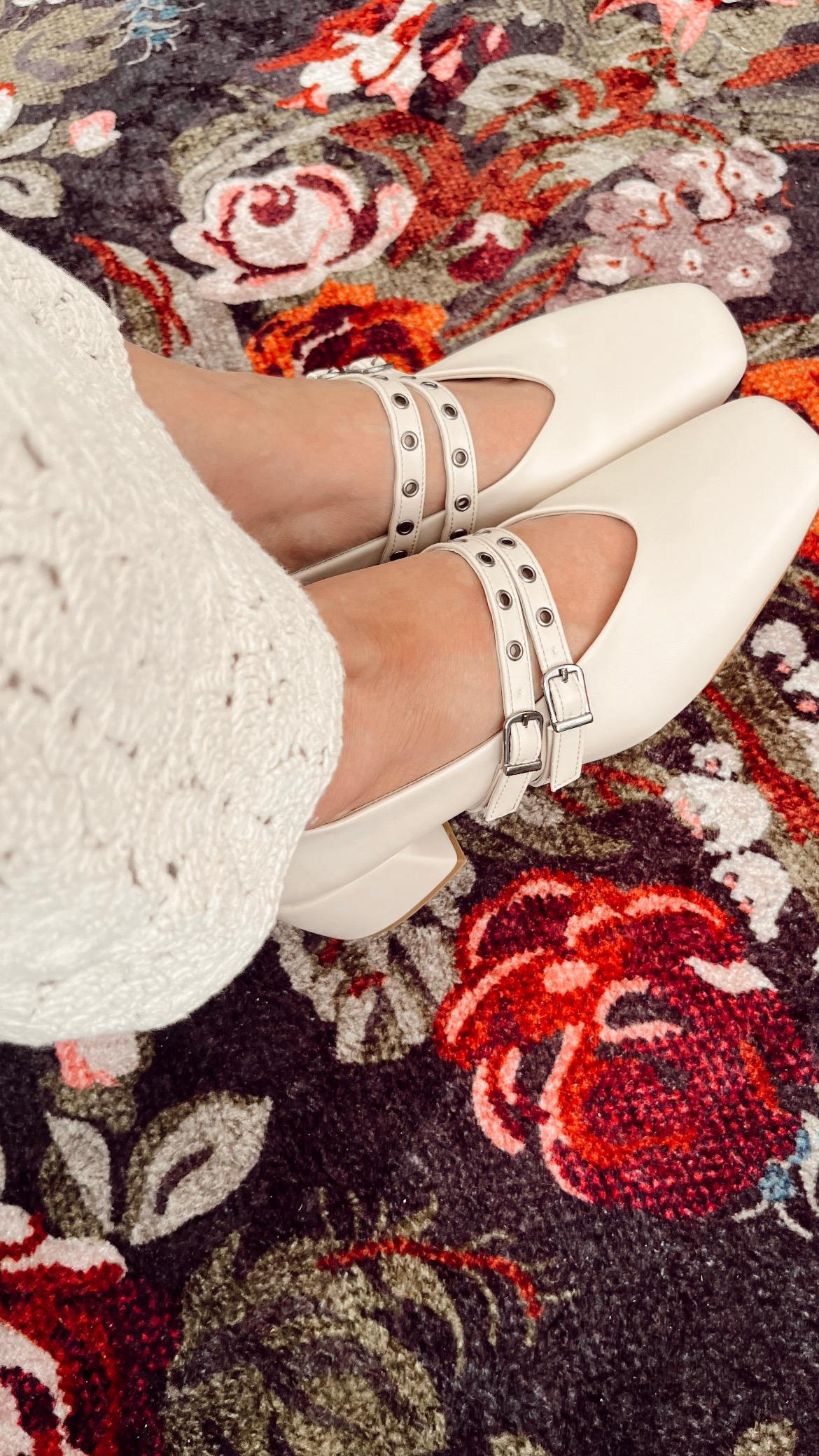 BEJ BANTLI KALIN TOPUKLU AYAKKABI