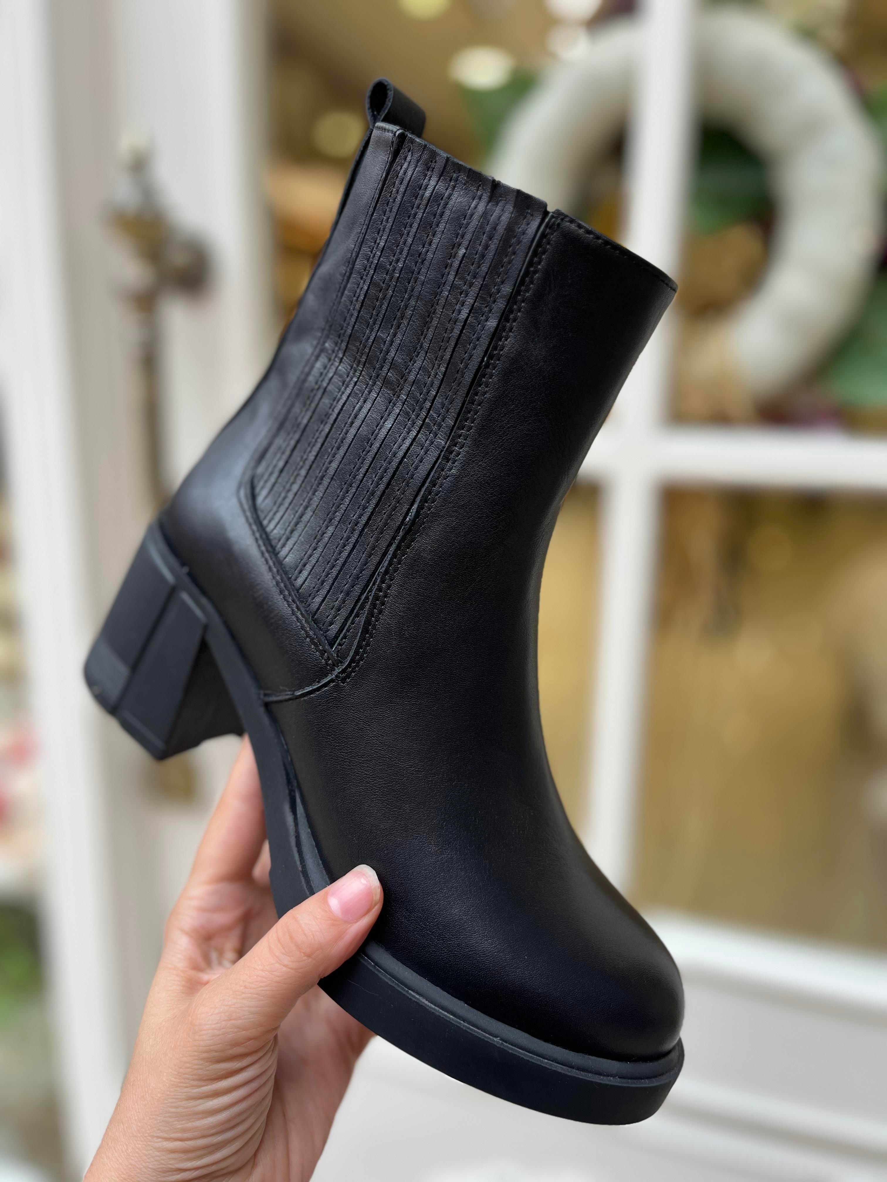 SİYAH YUVARLAK BURUNLU KALIN TOPUKLU BOT